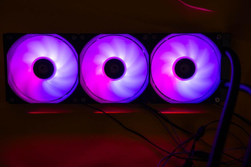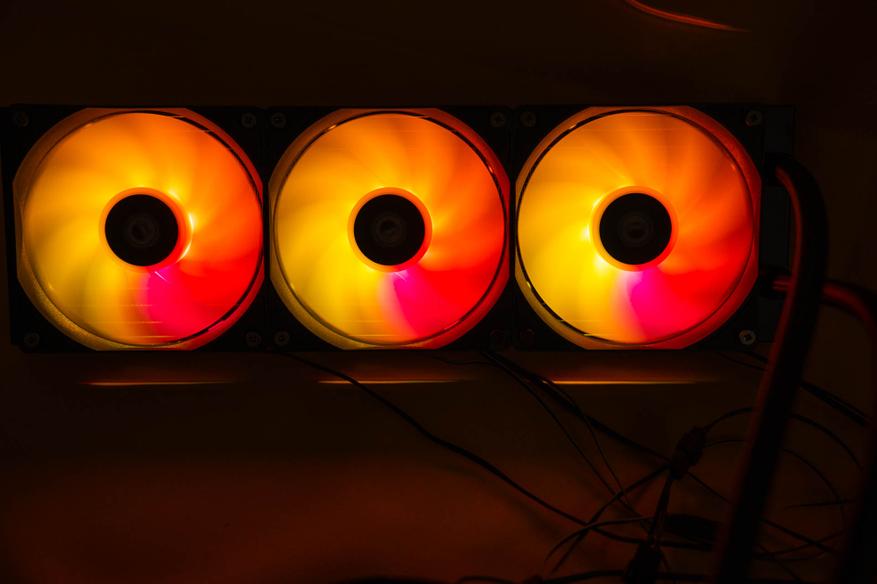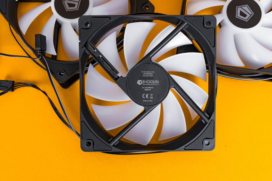 В комплект к ID-COOLING SL360 XE входят 3 х 120-миллиметровые вентилятора ID-COOLING AF-127-ARGB. Они оснащены антивибрационными прокладками с обеих сторон, а высота их профиля составляет 27 мм, вместо стандартных 25 мм. Вентиляторы используют надежные гидродинамические подшипники, которые обеспечивают плавное и бесшумное вращение. Диапазон скорости вращения составляет от 500 до 2000 оборотов в минуту. Подключение вентиляторов осуществляется последовательно, что позволяет управлять ими вместе. Кроме того, вентиляторы имеют разъемы для RGB-подсветки, что позволяет создать красочную и эффектную атмосферу в вашем компьютере.