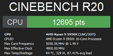 Но там Ryzen 5950X заработал всеми ядрами на 4.85 ГГц при потреблении 324W