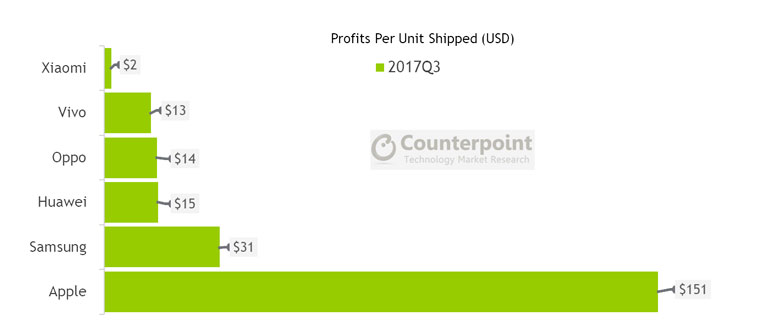 Counterpoint уже публиковали чистую прибыль с трубки всех производителей.