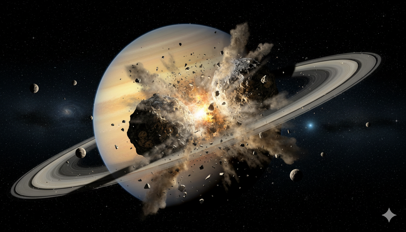 400 миллионов лет назад возле Сатурна произошло столкновение двух протоспутников, которое породило кольца и Титан