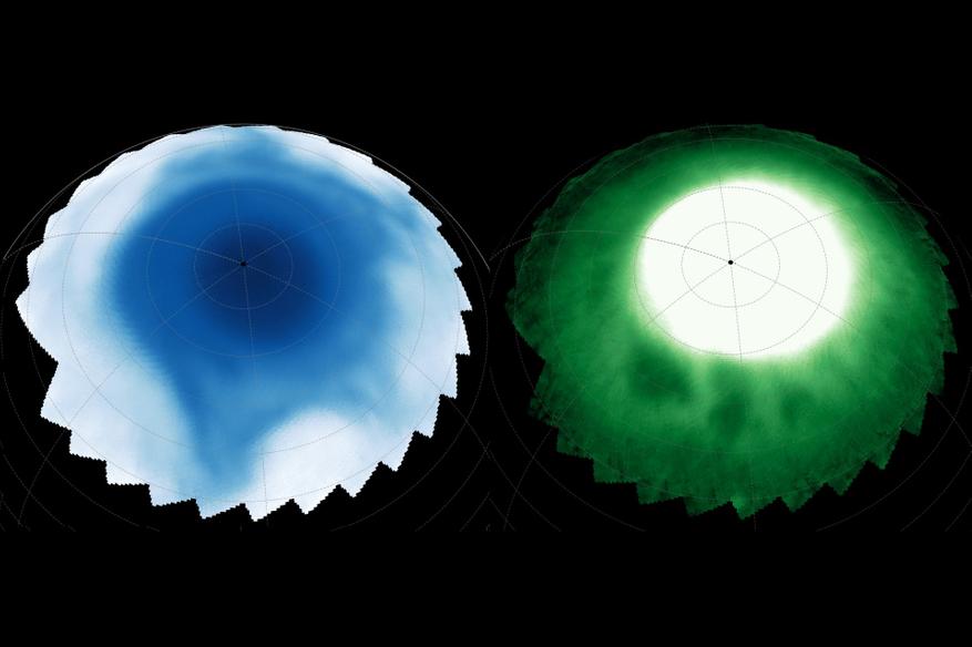 Исследователи обнаружили два необычных узора в разных слоях атмосферы планеты. В ионосфере зафиксированы тёмные объекты, напоминающие бусины, окружённые яркими ореолами полярных сияний. В стратосфере наблюдается асимметричный звёздообразный узор, простирающийся от северного полюса до экватора Сатурна.