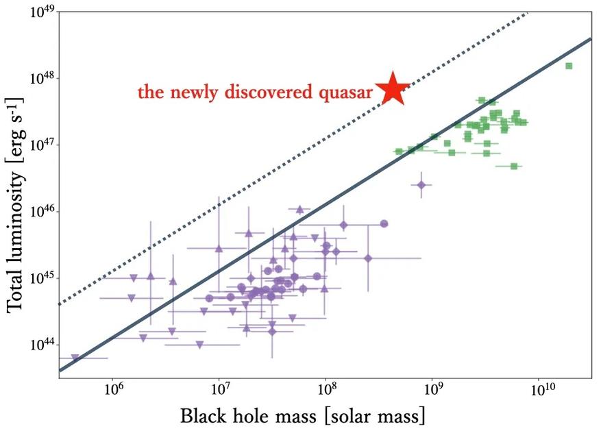 Международная команда астрофизиков под руководством Сакико Обути из Университета Васэда (Япония) сообщила об обнаружении необычайно активного квазара eFEDS J084222.9+001000 (ID830), поведение которого противоречит устоявшимся космологическим моделям. В статье, опубликованной в журнале The Astrophysical Journal, ученые представили результаты многоспектральных наблюдений сверхмассивной черной дыры в ядре галактики ID830, которая поглощает материю в 13 раз быстрее предела Эддингтона — фундаментального физического барьера, который, как считалось ранее, ограничивает максимальную скорость роста черных дыр.