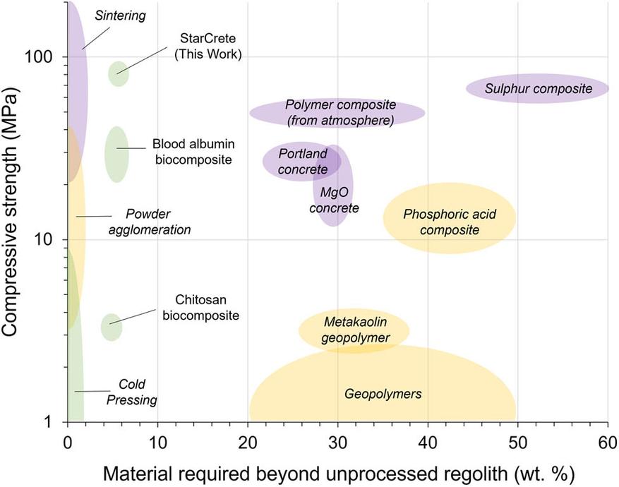 Другие исследователи обратились к биополимерам — природным молекулам, способным связывать другие вещества. Несколько лет назад та же команда ученых из Манчестерского университета предложила концепт с белком из человеческой крови и мочевиной из мочи астронавтов. Материал получался прочным, но идея имела очевидные недостатки. Забирать кровь у экипажа для строительства базы — откровенно не здоровый и не масштабируемый процесс.