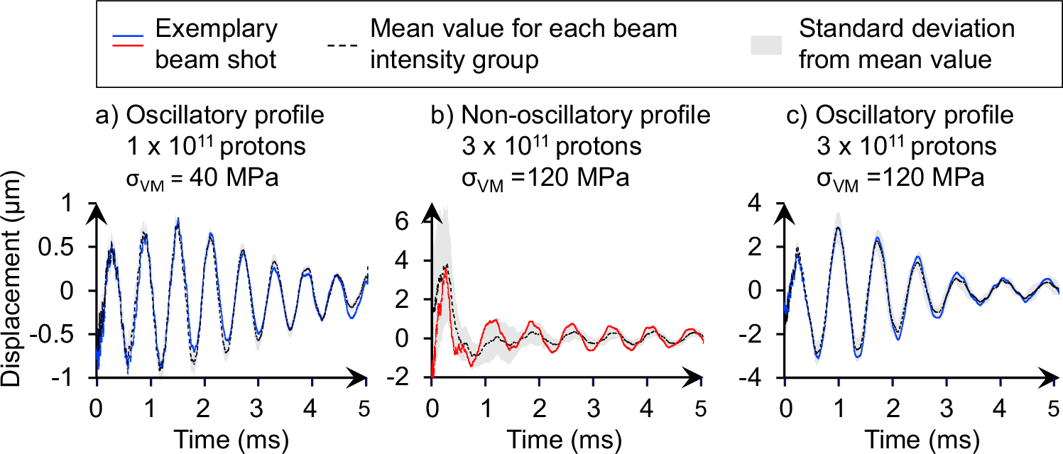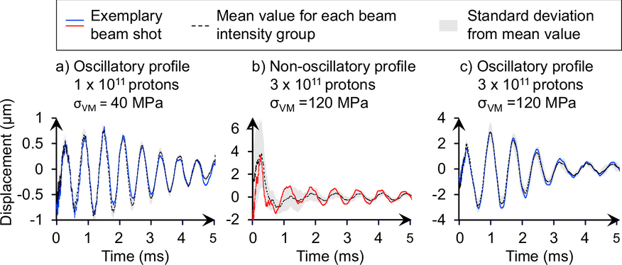 На первом этапе, при низкой интенсивности пучка (порядка 100 миллиардов протонов), материал демонстрировал упругое поведение. После удара возникали затухающие колебания определенной частоты, после чего образец возвращался в исходную форму. Энергия удара рассеивалась в виде механических вибраций.