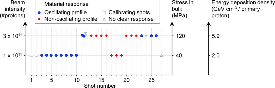 Вместо механического воздействия ученые применили облучение образца короткими импульсами протонов с энергией 440 ГэВ, разогнанных в Супер-протонном синхротроне (SPS). Выбор протонного пучка не случаен: заряженные частицы проникают вглубь мишени, вызывая ионизацию атомов и мгновенный разогрев материала по всей траектории прохождения пучка. Этот процесс происходит за доли микросекунды и носит характер «квази-изохорного нагрева» — температура повышается настолько быстро, что вещество не успевает расшириться, что приводит к возникновению мощных волн сжатия и растяжения.