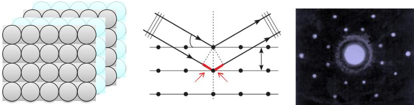 Начиналось всё с простых моделей, где математическое упорядочивание структуры материала шло впереди получения реального изображения. Появились странные фотографии, которые и картинками-то не назовёшь. Это результат дифракции излучения и обозначение карты рефлексов. Этот метод не имеет ничего общего с реальной фотографией и представляет собой распределение излучения при взаимодействии с кристаллической решеткой. На картинку попадают именно рефлексы, а соответствие высчитывается исходя из ожидаемого распределения. Например, если мы ищем железо, то понимаем, что рассеивание не его кристаллической решётке должно дать такую-то карту распределения бликов. Явление можно сравнить с попаданием света на какой-то прозрачный предмет с гранями. Вы наверняка замечали, как от стеклянного графина правильной формы расходятся по стене разные блики при солнечном свете. Если графин заменить кристаллической решёткой, а свет — подходящими лучами, то это и будет то, что долгое время называлось изображением атомной структуры.