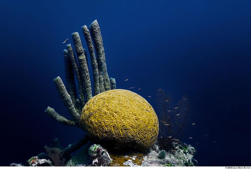 Вокруг края Голубой Дыры процветает богатая коралловая экосистема с более чем 150 видами кораллов. Здесь можно встретить элкхорновые кораллы, звездчатые кораллы и пальцевидные кораллы, которые создают яркие подводные сады.