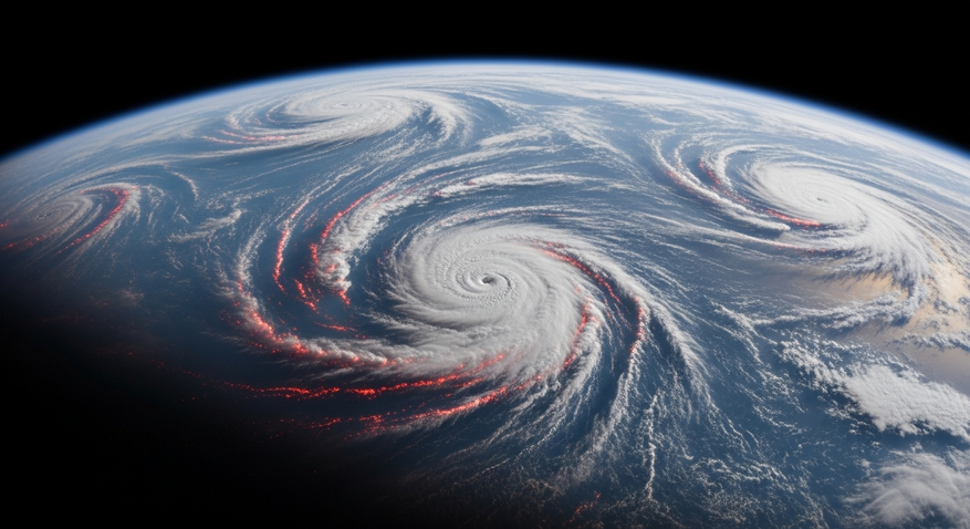 А теперь ускорим планету. Разница скоростей между экватором и полюсами станет ещё более драматичной. Эффект Кориолиса усилится многократно. Результат? Штормы не просто станут чаще — они превратятся в гиперураганы чудовищной разрушительной силы, а привычные погодные циклы окончательно выйдут из-под контроля.