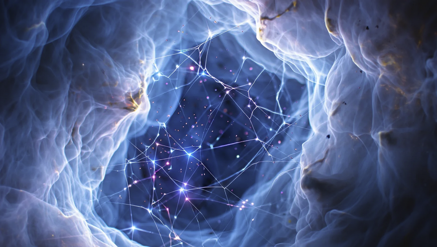 В первые мгновения после Большого взрыва Вселенная была невероятно плотным и горячим «супом» из частиц. Согласно моделям, в таких экстремальных условиях тёмные фотоны не могли существовать поодиночке. Вместо этого они должны были «сцепляться» друг с другом, образуя гигантские, простирающиеся на всю Вселенную нитевидные структуры — так называемые космические струны.