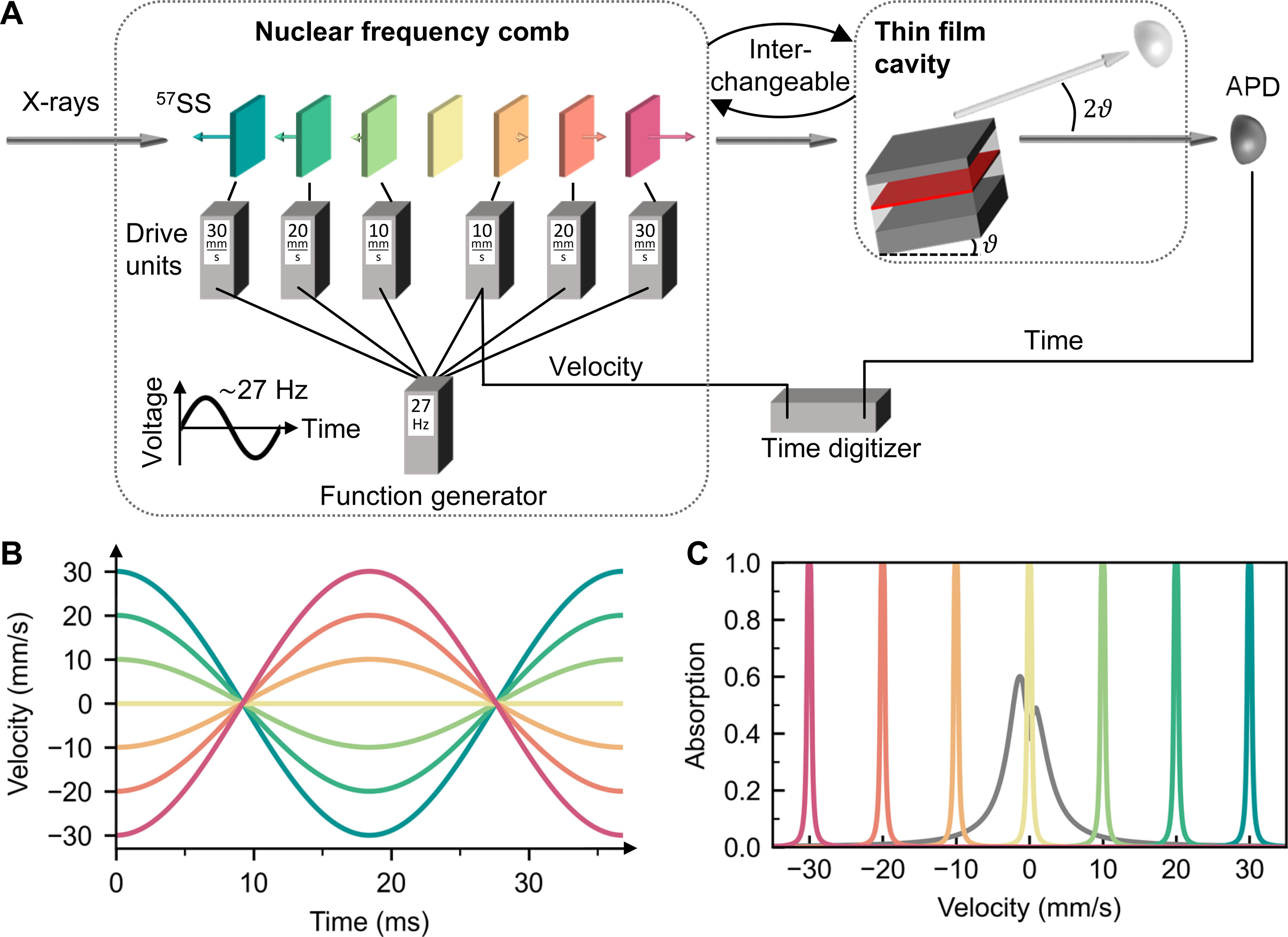 Исследователи создали систему, состоящую из нескольких поглотителей, содержащих железо-57, каждый из которых движется с определенной скоростью. За счет эффекта Доплера частота резонансного поглощения ядер в каждом из поглотителей смещается, формируя «гребенку» в спектре поглощения. Эта гребенка действует подобно ловушке, захватывая рентгеновские фотоны и позволяя им взаимодействовать с ядрами железа. В результате фотоны сохраняются в виде коллективного возбуждения ядерной системы, образуя так называемый ядерный поляритон.
