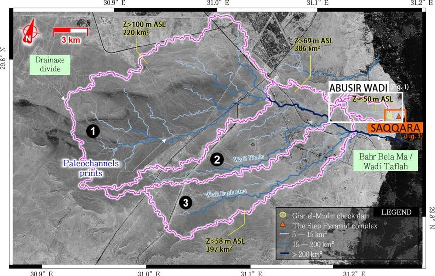 Ключевым элементом открытия стала переоценка назначения древней структуры Гиср-эль-Мудир. Ранее считавшаяся церемониальным или незавершенным сооружением, она теперь интерпретируется как древнейшая известная защитная плотина Египта. Согласно исследованию, плотина перехватывала сток из пустынных вади западнее Саккары, создавая водохранилище для питания гидравлической системы.