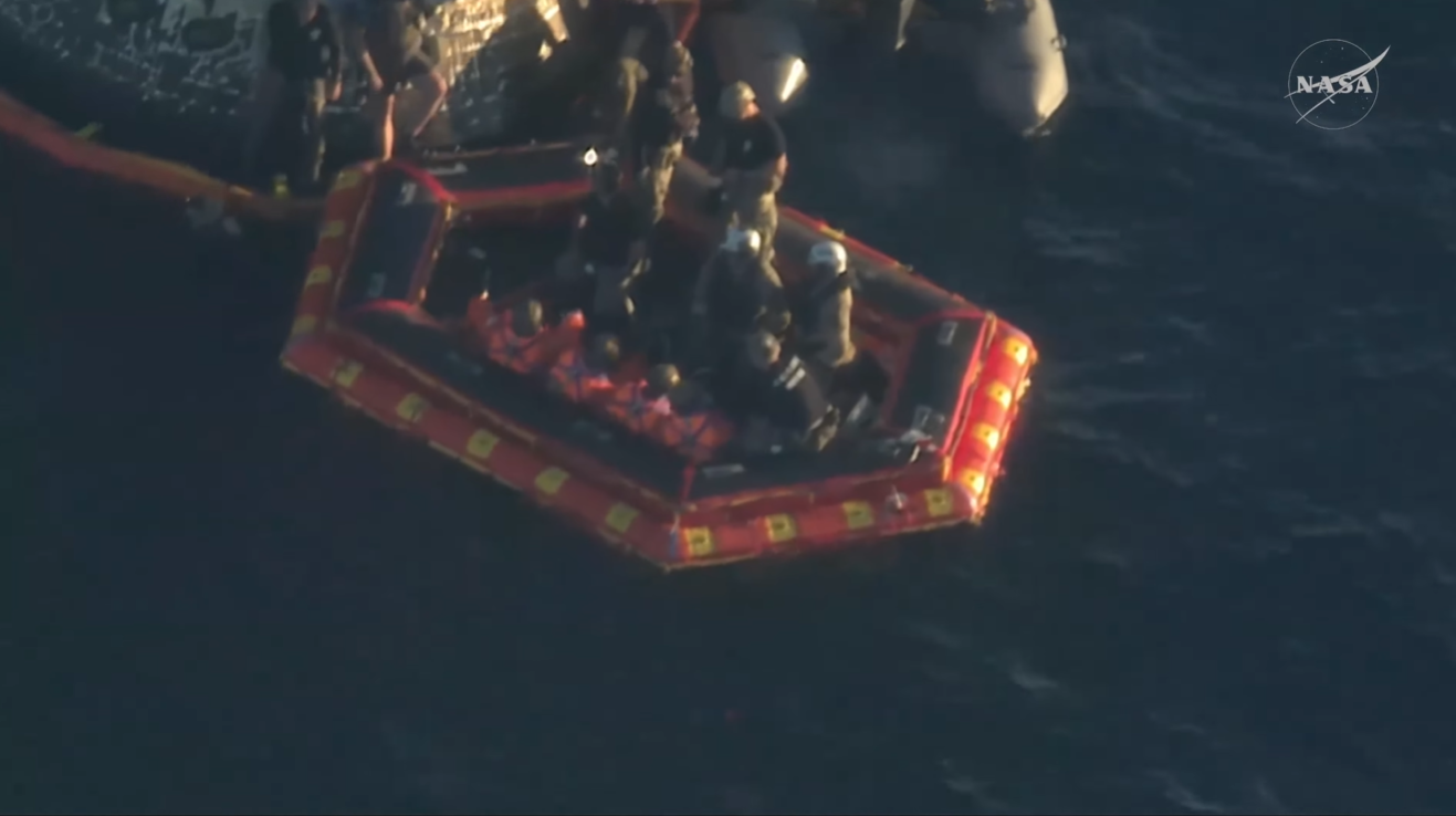 Агентство подчеркнула, что посадка с помощью парашютной системы была совершена в идеале. Приземлившиеся астронавты находятся в хорошем состоянии и были эвакуированы на надувных лодках после продолжительного нахождения в космосе.