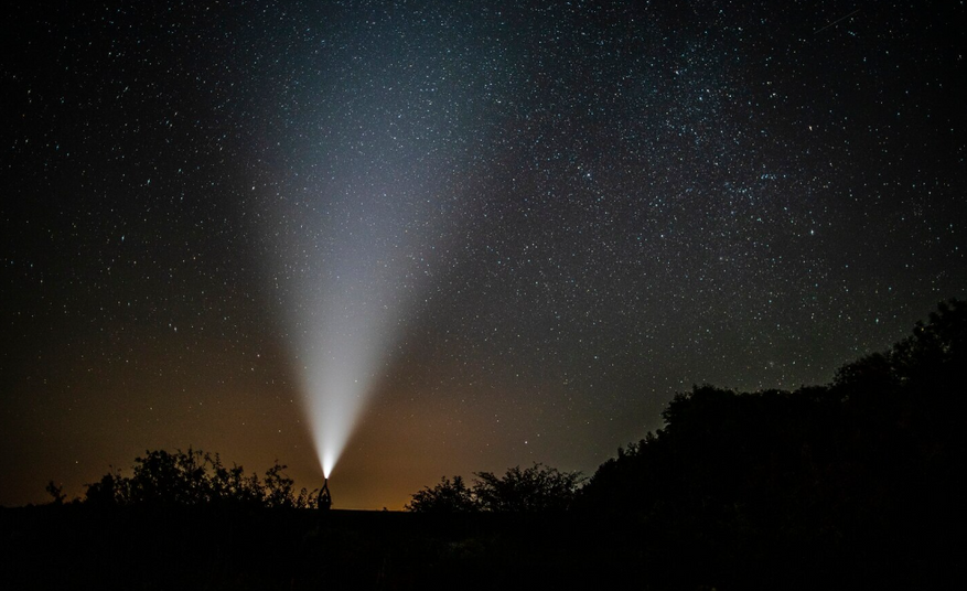 Если посветить фонариком в ночное небо, то будет ли свет распространяться бесконечно?