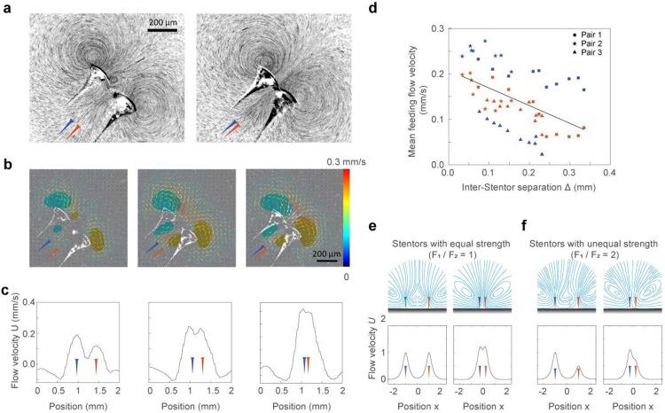 И тут начинается самое интересное. Исследователи вооружились приборами и принялись измерять потоки воды. Оказалось, что два соседствующих Stentor'а, работая вместе, способны создать поток воды к своим ртам почти вдвое мощнее, чем каждый из них поодиночке! Представляете? Это как если бы два пылесоса, поставленные рядом, вдруг начали всасывать не в два, а почти в четыре раза сильнее.