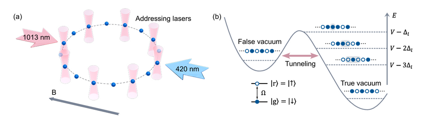 Наблюдать распад метастабильного вакуума в астрофизических или космологических масштабах невозможно. Чтобы изучить эту динамику экспериментально, объединенная группа исследователей из Университета Цинхуа, Оксфордского университета и ряда других научных институтов создала управляемую физическую модель этого процесса на лабораторном столе. Для этого они использовали программируемый квантовый симулятор на базе нейтральных атомов.