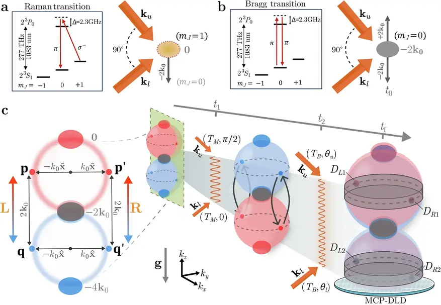 После того как конденсат сформирован, магнитная ловушка отключается. Облако атомов начинает свободно падать под действием гравитации. В этот момент ученые облучают падающую материю точным лазерным импульсом. Используя эффект брэгговской дифракции, лазер передает части атомов дополнительный импульс, когерентно расщепляя исходное облако на несколько групп, которые начинают двигаться с разными скоростями.
