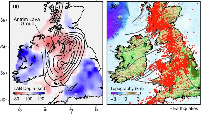 Литосфера — это твёрдая внешняя оболочка Земли, состоящая из тектонических плит. Обычно она очень толстая и прочная. Но, как выяснили исследователи, под Британскими островами и Ирландским морем эта броня была неоднородной. Там существовали целые коридоры, где литосфера была значительно тоньше и слабее.