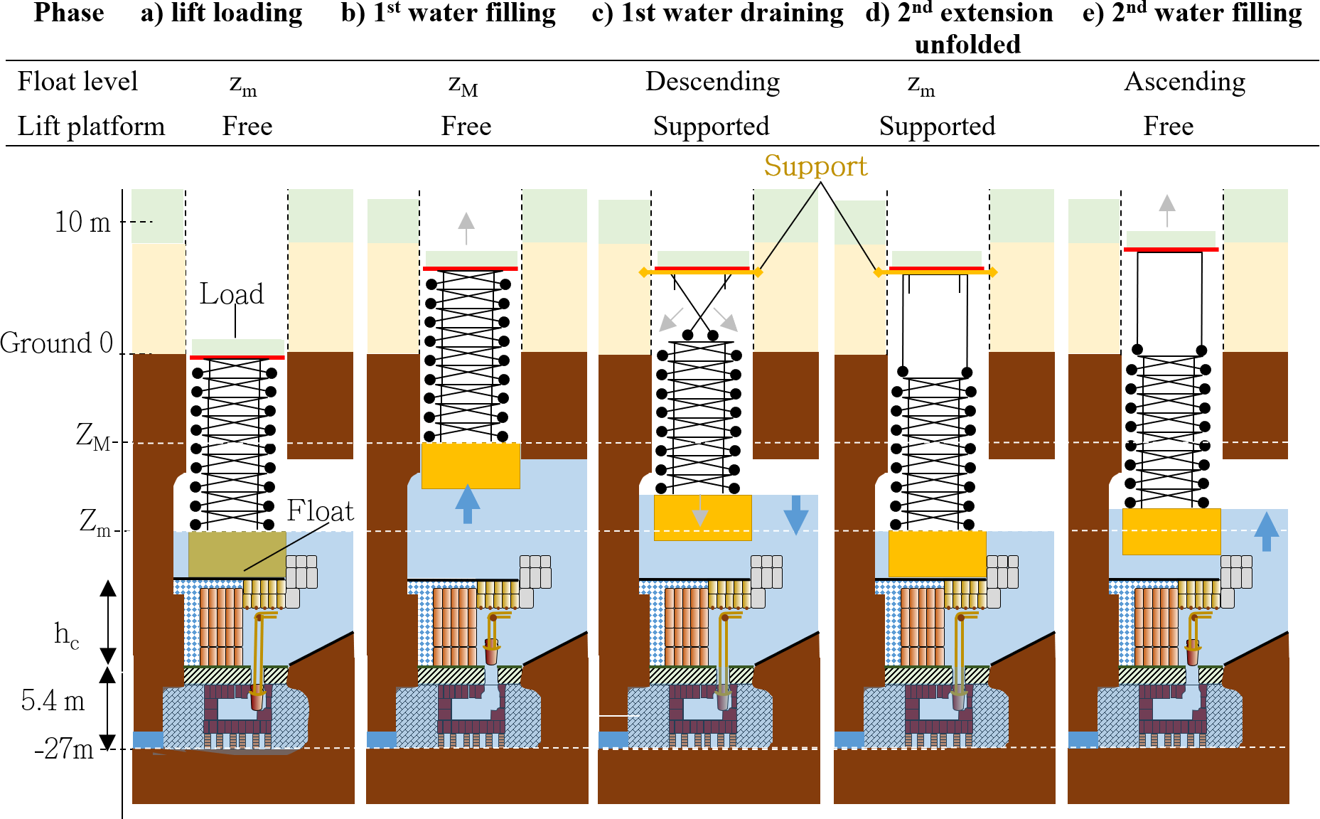 Вода, поступающая из «Сухого рва», наполняла шахту, поднимая массивный поплавок, на котором находились блоки. Таким образом, строительство пирамиды могло вестись от центра к периферии. Эта гипотеза подтверждается рядом архитектурных особенностей шахт, например, наличием в них специальных туннелей для контроля уровня воды и специальной облицовки, предотвращающей просачивание воды.