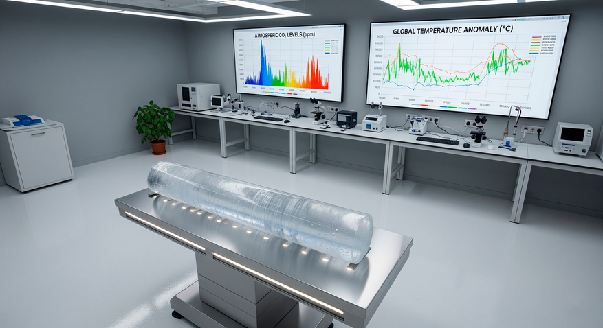 Эти ледяные цилиндры, похожие на гигантские карандаши, были отправлены в лаборатории. И здесь началось самое интересное. Учёные поняли, что, изучая слои, они могут отмотать время назад. Каждый год новый слой снега оседал на предыдущий, спрессовывался и превращался в лёд, захватывая с собой маленькие пузырьки воздуха. Эти пузырьки — и есть наш главный ключ. Они содержат образец атмосферы того времени, когда выпал снег.