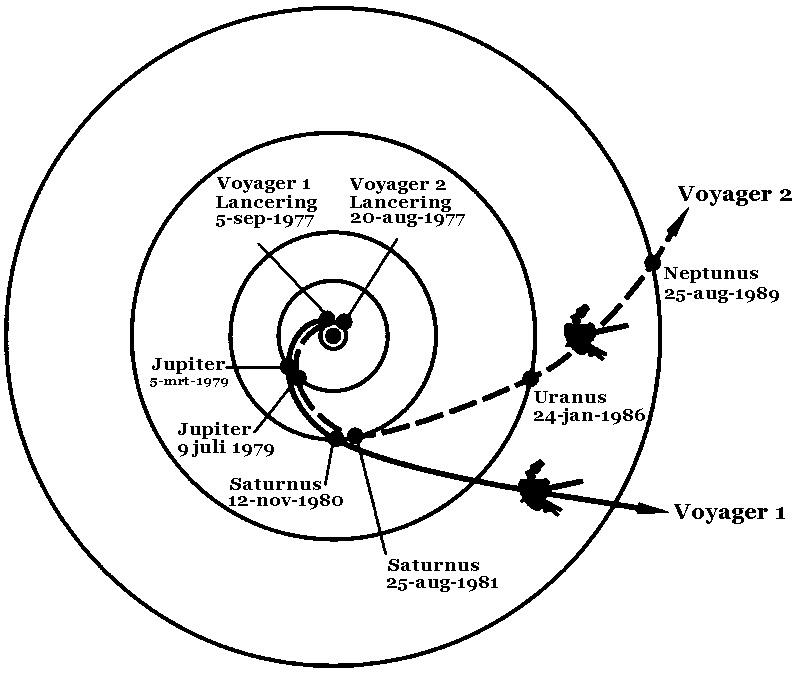 При этом у «Вояджера» не было привычного маршевого двигателя. Его главным «мотором» стала гравитация, прежде всего самой большой планеты Юпитера. Аппарат должен был разгоняться за счёт гравитационных манёвров, используя притяжение планет как «космическую рогатку». Такая схема стала возможной благодаря редкому расположению планет, на которое указал инженер Гэри Флэндро. Он рассчитал, что в конце 1970-х крайние планеты Солнечной системы выстроятся в огромную дугу. Подобное событие происходит примерно раз в 176 лет, поэтому запуск надо было проводить в ускоренных темпах. Для надёжности решили отправить два почти идентичных аппарата. Один должен был сосредоточиться на Юпитере и Сатурне, а второй направиться к Урану и Нептуну.