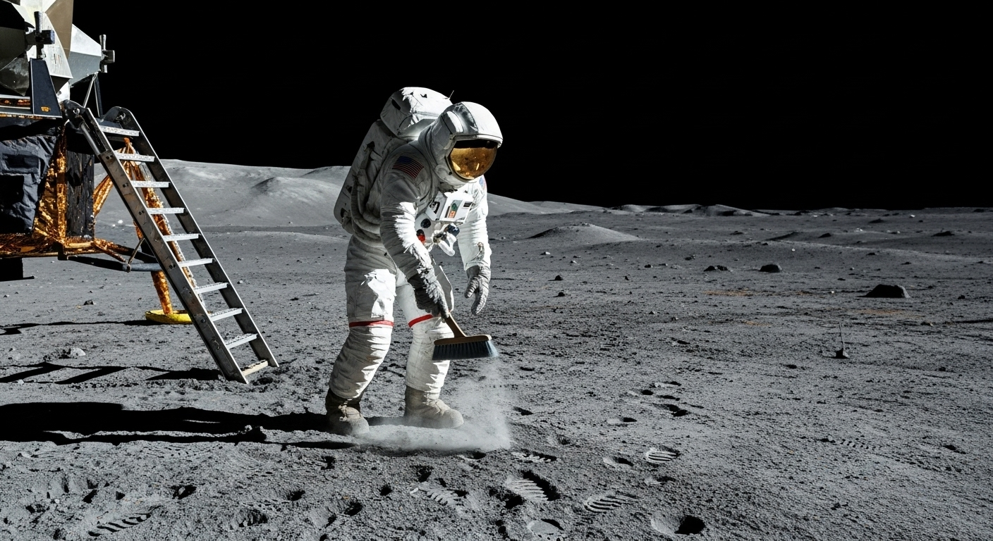 Лунная пыль — не просто мелкий песок, а коварный противник, с которым астронавты программы «Аполлон» столкнулись на поверхности Луны. Она цеплялась за скафандры, проникала в оборудование и угрожала здоровью экипажа. После прогулок по Луне астронавты возвращались в лунный модуль, а затем в командный, где пыль могла стать серьёзной проблемой. Как они боролись с этим невидимым врагом и какие методы использовали, чтобы очистить скафандры и защитить модули?