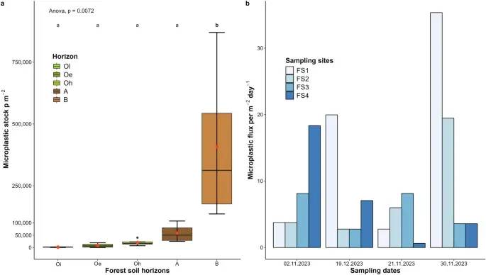 Но на этом путешествие частиц не заканчивается. В дело вступают главные труженики леса: дождевые черви, бактерии, грибы. Перерабатывая органику, они постепенно утягивают микропластик всё глубже и глубже в почву. В результате, как показали пробы, пластик обнаруживается не только на поверхности, но и в нижних слоях грунта, где он может оставаться десятилетиями, если не столетиями.