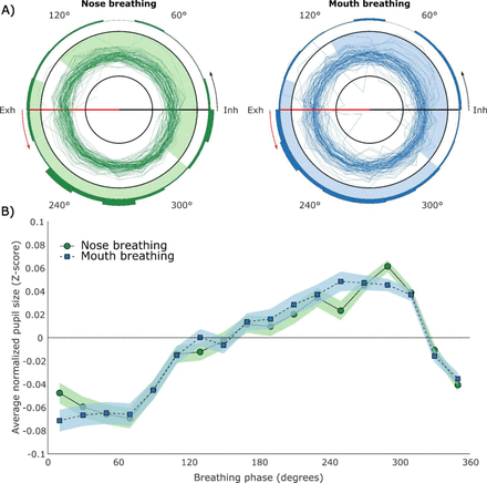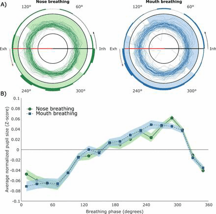 Лишь недавно шведские учёные решили тщательно изучить связь между дыханием и размером зрачков у человека. В ходе трёх экспериментов, проведённых с соблюдением всех стандартов научной строгости, было установлено, что зрачки достигают своего максимального размера не на вдохе, а на выдохе. Это явление получило название респираторно-зрачковый фазовый эффект (РЗФЭ).