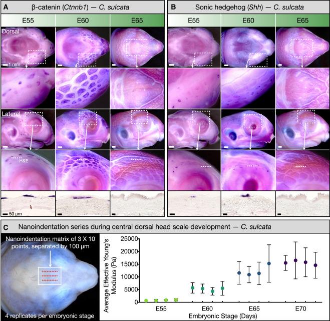 Но, как это часто бывает в науке, нашлось исключение. Несколько лет назад команда профессора Мишеля Милинковича выяснила, что у крокодилов чешуя на голове формируется совсем иначе. Никаких плакод, никаких точечных генетических команд. Вместо этого кожа просто… сминается в складки, словно ковёр, который толкают к стене. Этот процесс обусловлен чисто механическим напряжением: череп растёт, а кожа на нём — чуть медленнее, вот она и «морщится», образуя неповторимый узор.