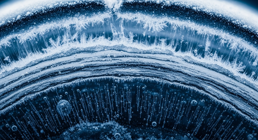 Пробурив 22-метровый керн, они добрались до слоёв морских отложений, замёрзших от 100 000 до 120 000 лет назад. Это не просто кусок льда и грязи. Внутри этой замороженной массы находятся микроскопические поры с незамерзающей жидкой водой — крошечные камеры-одиночки, где микробы оказались в ловушке. Никакой еды снаружи, никакого способа избавиться от отходов. Полная изоляция. Любой, кто там выжил, — настоящий мастер выживания.
