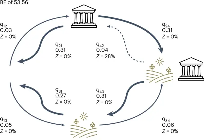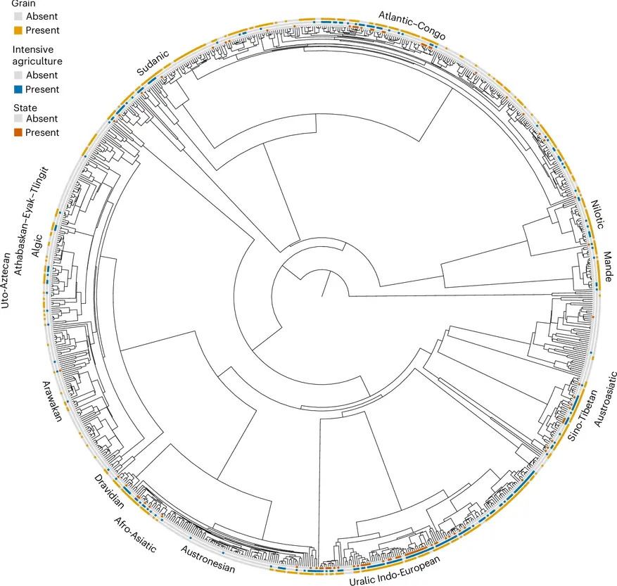 Авторы исследования, кроме философствования, использовали байесовский филогенетический анализ. Они наложили данные о 868 культурах мира на языковое древо, чтобы проследить эволюцию социальных признаков во времени. Это позволяет понять не просто то, какие признаки существуют вместе, а какой из них появился раньше.