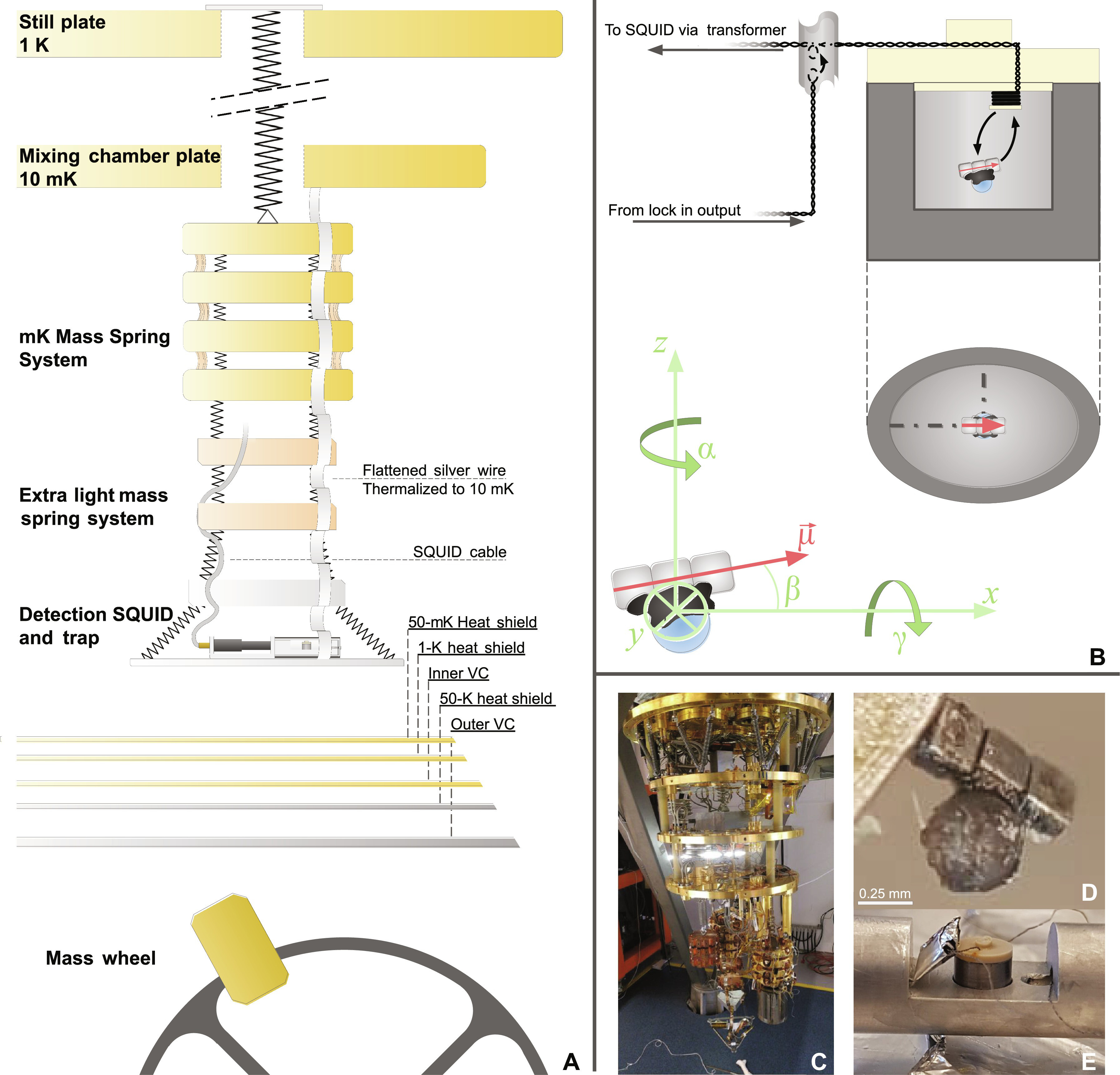 Рядом с криостатом было установлено вращающееся колесо, на ободе которого закреплены три латунные массы весом по 2,45 кг каждая. При вращении колеса эти массы периодически приближаются к левитирующей частице и удаляются от нее, создавая переменное гравитационное поле.
