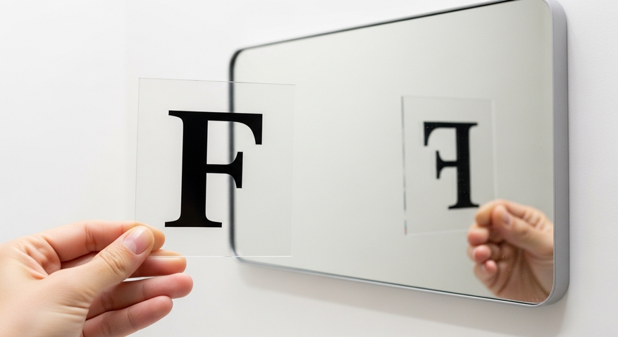 Проще всего это понять на примере надписи. Если написать букву на прозрачной плёнке и поднести к зеркалу, она не перевернётся. А если написать её на бумаге, то, чтобы увидеть её в зеркале, нам придётся эту бумагу развернуть — то есть, мы сами поменяем левую и правую стороны листа местами. Зеркало лишь покажет результат наших действий.
