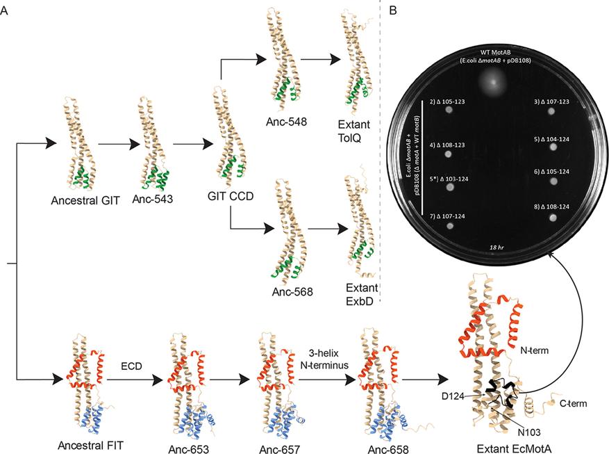 Более того, внутри самого клана FIT ученые увидели дальнейшую эволюцию. У более древних моторов TGI состоит из четырех белковых спиралей. У более поздних, как у E. coli, их уже пять.