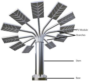 Дан-Би Ум провел моделирование солнечных деревьев высотой 4,8 метра и шириной 4,1 метра. Каждая конструкция оснащается 35 солнечными панелями, закрепленными на искусственных ветвях. Мощность одного дерева составляет от 11,5 до 15,8 киловатт в зависимости от типа используемых панелей.