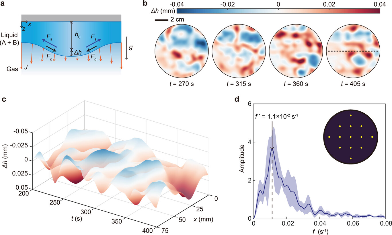 В эксперименте со смесью из 80% этиленгликоля и 20% 2-бутанола ученые зафиксировали постоянные колебания толщины пленки. Жидкость циклически опускалась и поднималась. Анализ данных показал, что поверхность пульсирует с четкой периодичностью и частотой около 0,01 Герца. Система находится в динамическом равновесии, где две физические силы поочередно компенсируют друг друга.