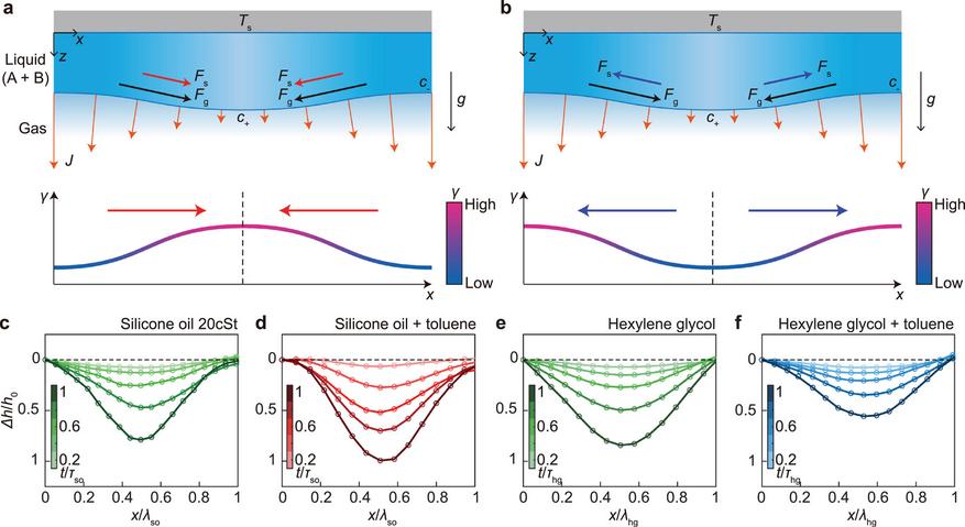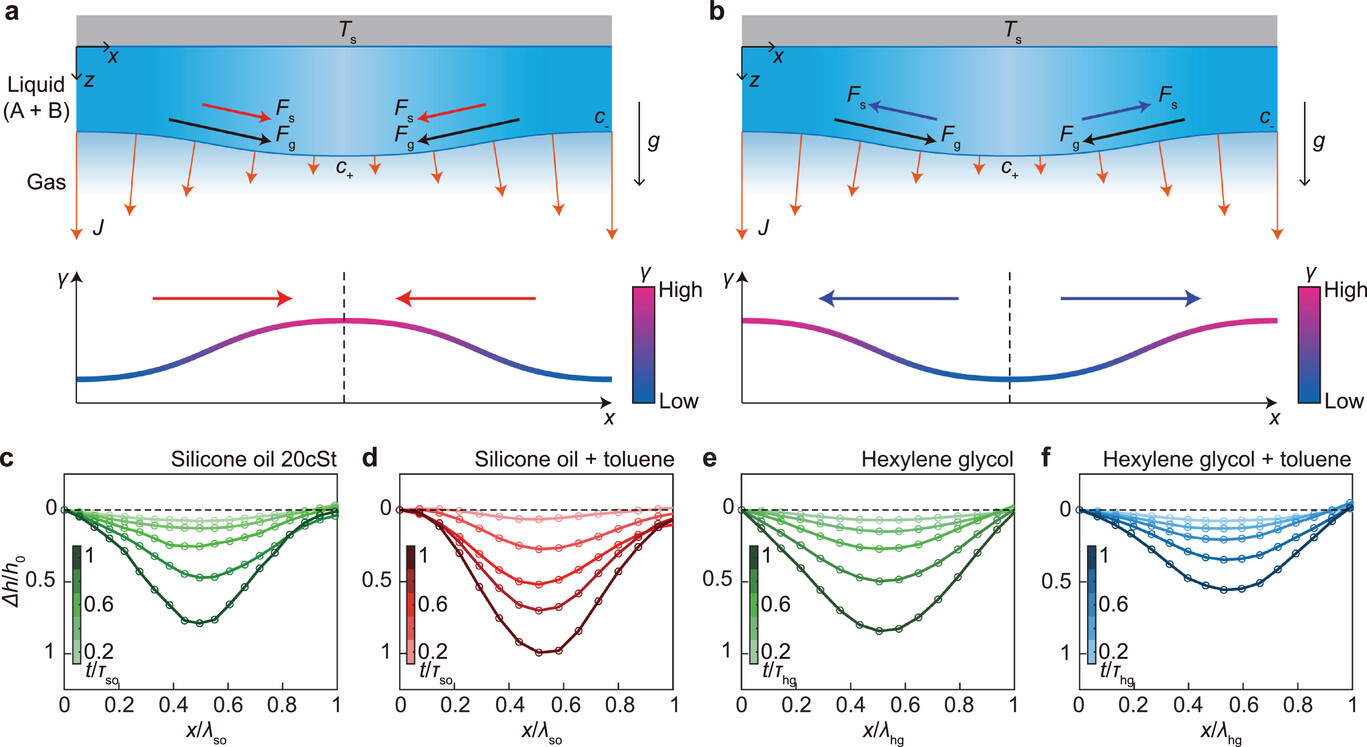 Однако группа исследователей из Департамента машиностроения Корейского института передовых технологий (KAIST) опубликовала работу, в которой предложен принципиально новый метод. Ученые доказали, что перевернутая жидкая пленка способна стабилизировать себя самостоятельно, без дополнительных источников энергии. Для этого необходимо использовать многокомпонентные растворы и законы термодинамики, а именно — концентрационный эффект Марангони, который запускается в процессе обычного испарения.
