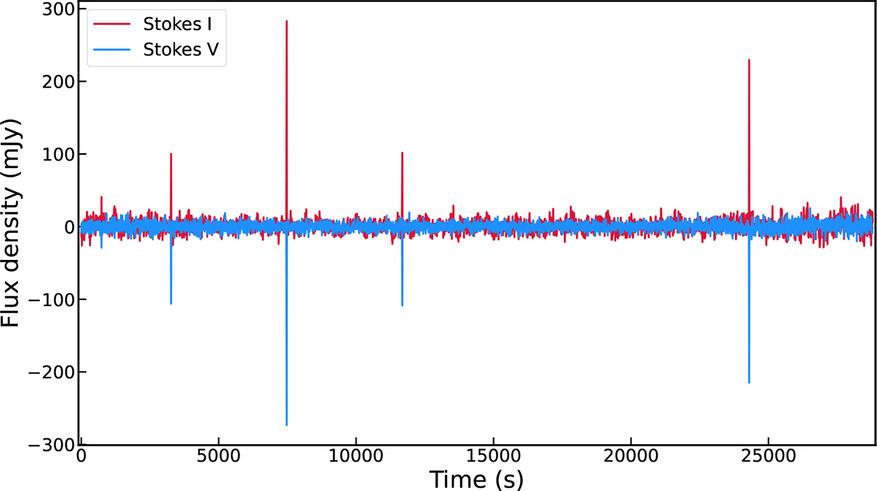 - Идеальная поляризация: Радиоволны от этого объекта имеют 100% круговую поляризацию. Представьте, что свет — это волна, колеблющаяся в определённой плоскости. А теперь представьте, что эта плоскость вращается, и волна летит в пространстве, закручиваясь, как идеальный штопор. Такого чистого сигнала астрономы не видели ни от нейтронных звёзд, ни от белых карликов.