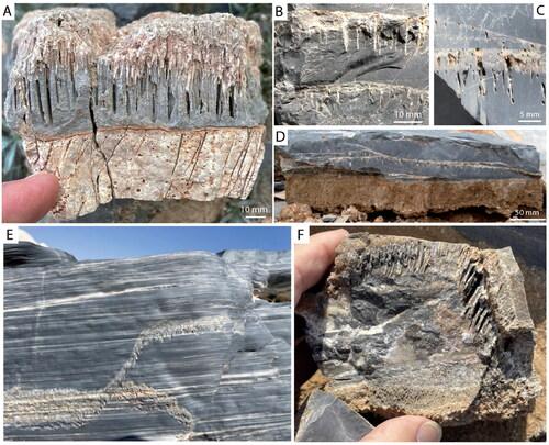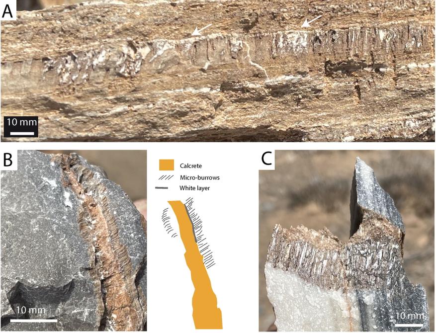 Внутри заполненных туннелей были найдены микроскопические дуги, напоминающие линии роста. Их ширина составляет около 1 микрометра. Это указывает на то, что продвижение колонии было не непрерывным, а циклическим, возможно, зависящим от поступления влаги в периоды дождей или туманов.