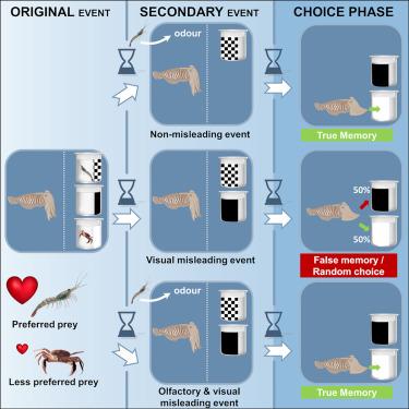 После серии подобных опытов каракатицы сталкивались с выбором между двумя пробирками, одна из которых была пустой, а другая содержала крабов. Интересно, что каракатицы, ранее видевшие пробирки с креветками в окружении определенных визуальных образов, были склонны выбирать пустую пробирку, если она сопровождалась теми же визуальными сигналами. Это говорит о том, что каракатицы, подобно людям, способны «достраивать» картину прошлого, основываясь на фрагментарных воспоминаниях и ассоциациях, и эта реконструкция не всегда отражает реальные события.