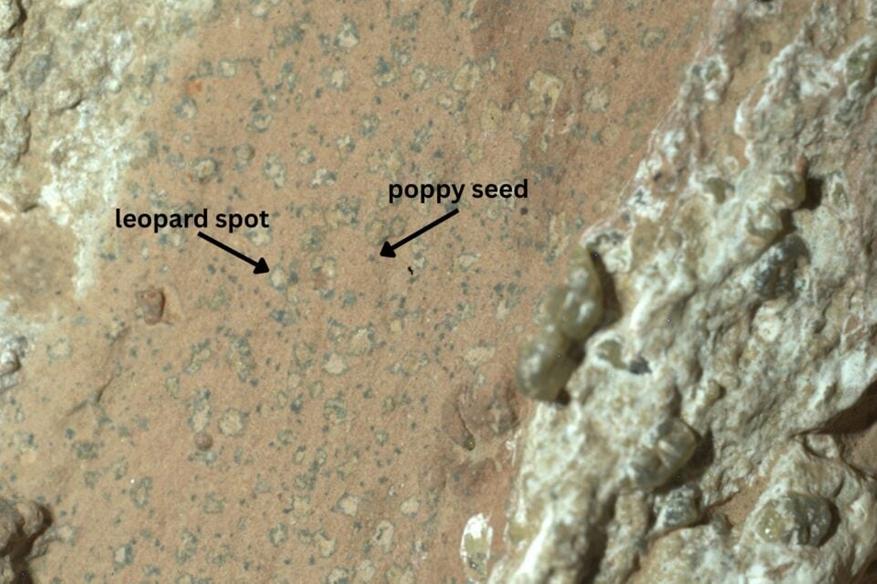 Исследование, опубликованное в журнале Nature, выявило в образце характерные текстурные особенности — мелкие черные включения и более крупные пятна неправильной формы. Анализ с помощью приборов SHERLOC и PIXL показал присутствие органических соединений и специфических минералов — вивианита и грейгита, богатых железом.