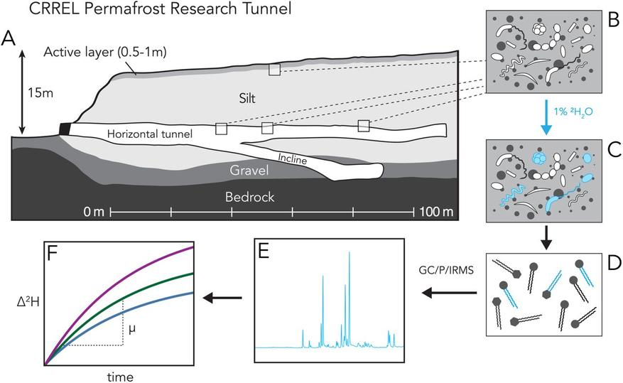 Чтобы понять, насколько деятельны микробы, простого наблюдения будет мало. Нужно было измерить скорость их роста. Ученые из Университета Колорадо в Боулдере и Инженерного корпуса армии США применили для этого метод изотопного зондирования липидов.