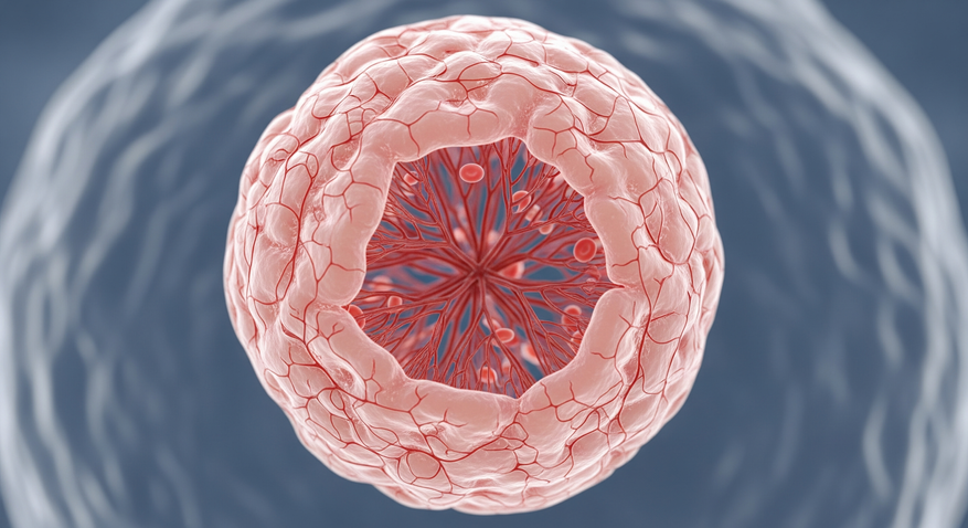 Одной из главных проблем современной нейробиологии остается создание достоверных моделей человеческого мозга. Мозговые органоиды — трехмерные структуры, выращенные из стволовых клеток — позволяют изучать развитие нервной ткани, но имеют важное ограничение: отсутствие кровеносной системы. В живом организме сосуды появляются на ранних этапах эмбриогенеза, обеспечивая доставку кислорода и сигнальных молекул. В лабораторных условиях органоиды получают питание только за счет пассивной диффузии из окружающей среды. В результате питательные вещества проникают лишь во внешние слои, а в центре формируется зона гипоксии и массовой гибели клеток (апоптоза).