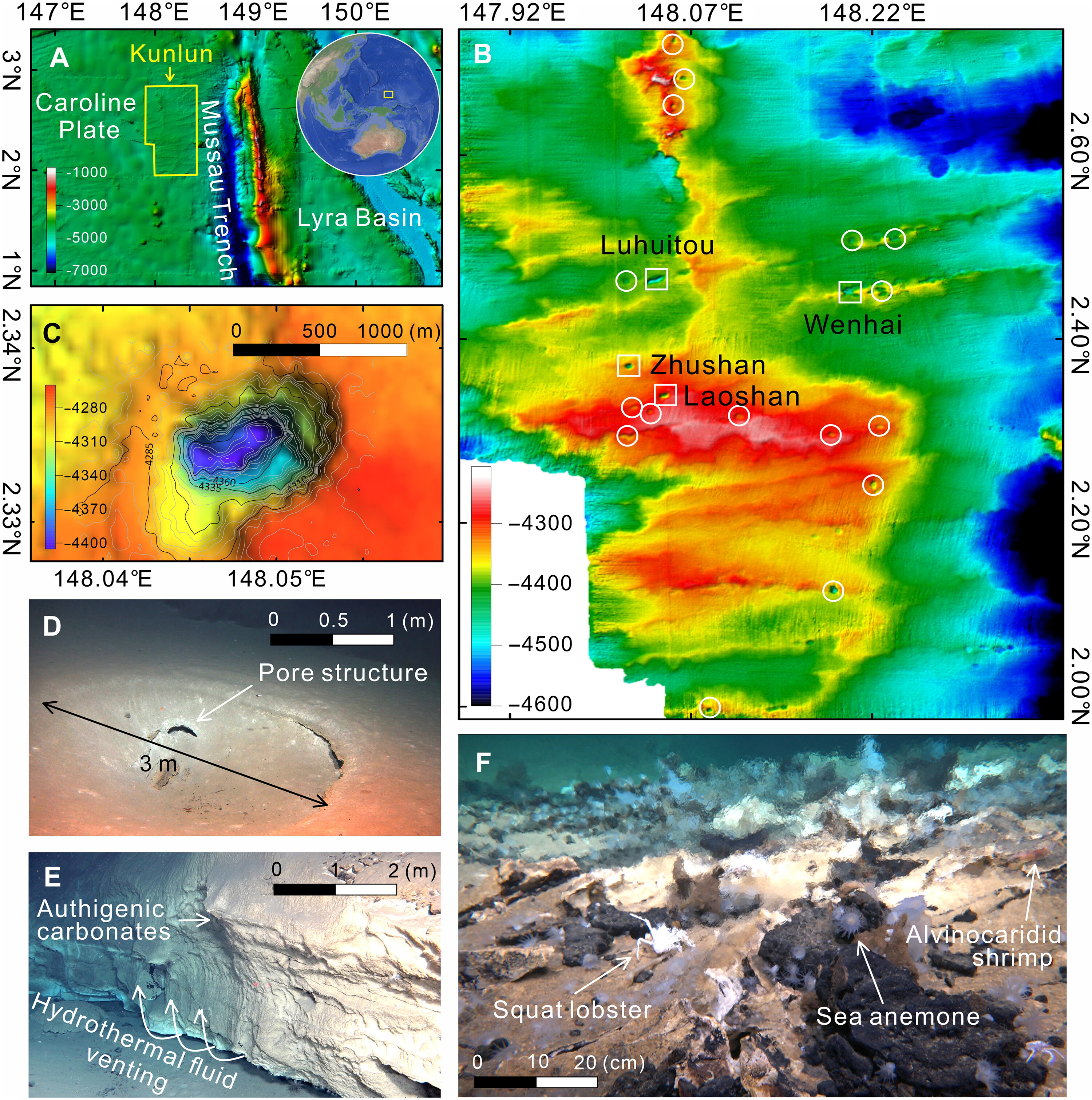 Представьте себе пейзаж на глубине нескольких километров: вместо ровного илистого дна — скопление из двадцати огромных кратеров, некоторые шириной в километр. Они похожи на гигантские трубы или колодцы, уходящие в земную кору. Это и есть гидротермальное поле Куньлунь. И самое удивительное в нём — его расположение.
