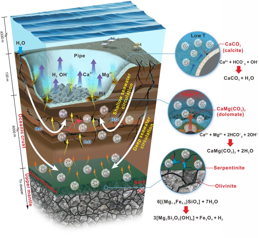Вода буквально разрывает химические связи в минералах. В результате образуются новые минералы — серпентины (отсюда и название), а побочным продуктом этой реакции становится огромное количество чистого водорода (H₂).