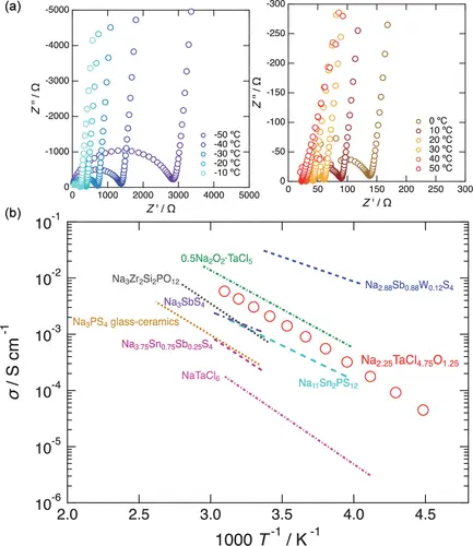 Полученные материалы продемонстрировали впечатляющие результаты. Электролит Na2.25TaCl4.75O1.25 показал высокую ионную проводимость (2.5 x 10−3 S cm−1 при 25 °C) и широкий диапазон электрохимической стабильности (0.4-4.1 В по отношению к Na+/Na).