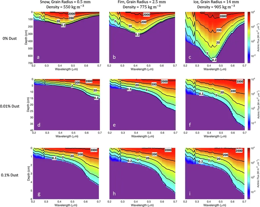 Центральное внимание в этом исследовании уделяется водяному льду, образовавшемуся в результате древних снегопадов, смешанных с марсианской пылью. Эта замерзшая смесь, покрывающая значительные площади планеты, может таить в себе нечто удивительное. Водяной лед на Марсе, как и на Земле, представляет собой не просто монолитную массу. Его структура неоднородна, он содержит различные примеси, в том числе частицы пыли, которые были подняты в атмосферу во время пылевых бурь и осели на поверхности вместе со снегом.