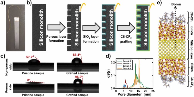 - Функционализация поверхности: внутренние стенки пор покрываются тончайшим слоем оксида кремния, а затем на них прививаются молекулы фторорганических соединений. Это придает материалу абсолютные гидрофобные свойства — он начинает буквально отталкивать воду на молекулярном уровне.