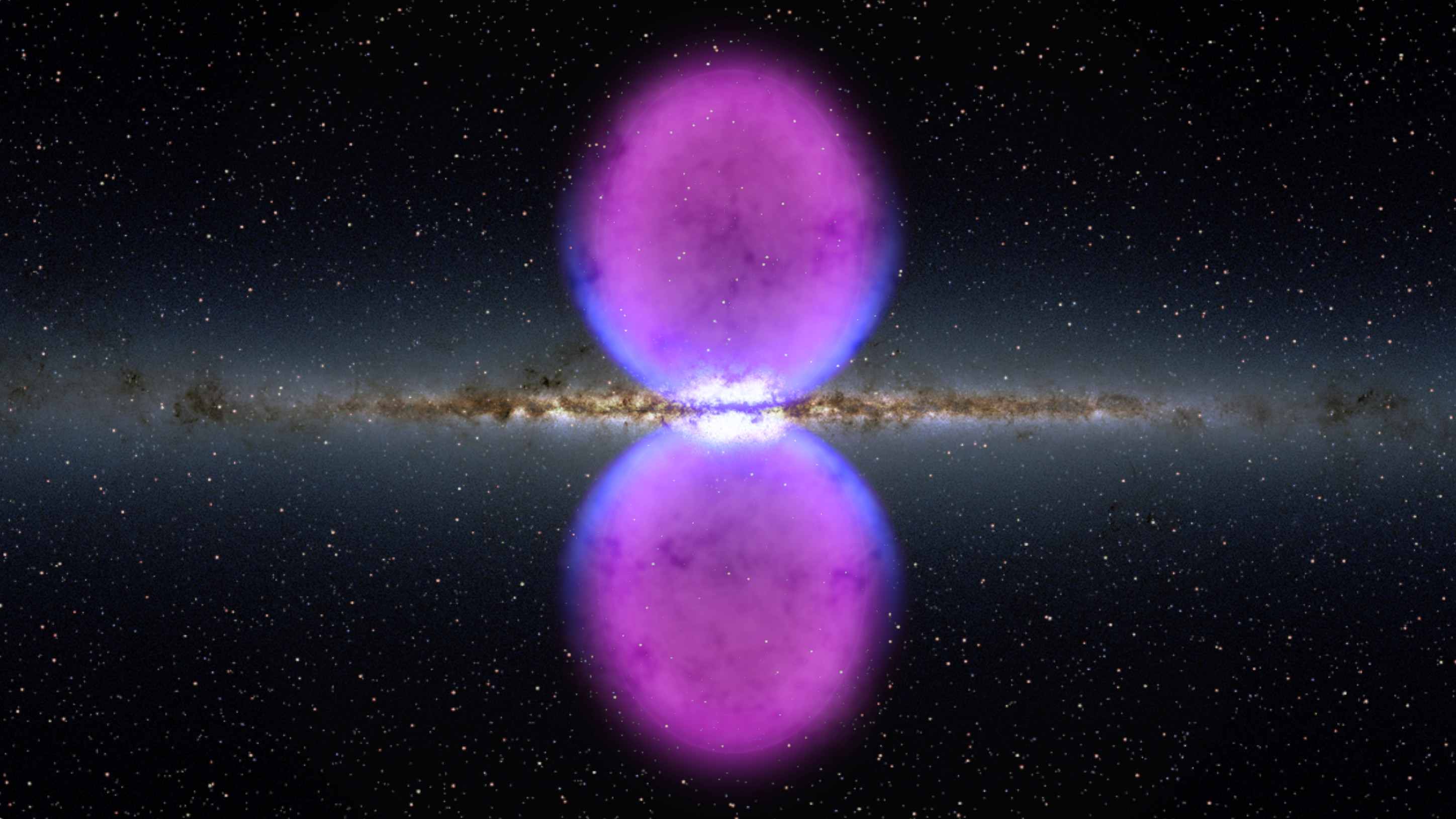 - Пузырей Ферми — гигантских структур, испускающих гамма-лучи, которые простираются перпендикулярно диску Галактики.