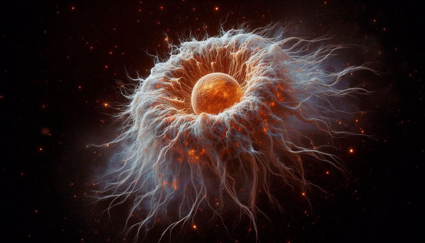 Особый интерес ученых вызвали странные нитевидные структуры, исходящие от «звезды-зомби» и напоминающие лепестки одуванчика. Благодаря спектрографу KCWI обсерватории Кека на Гавайях, исследователи смогли получить беспрецедентно детальное трехмерное изображение этих структур и изучить их динамику.