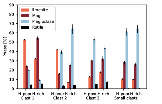 Исследование фрагмента метеорита размером 12x8x2 мм показало, что водород распределен в нем неравномерно. Он сосредоточен в нескольких крупных зонах, связанных с магматическими включениями. Эти зоны ученые назвали H-Fe-ox кластами.